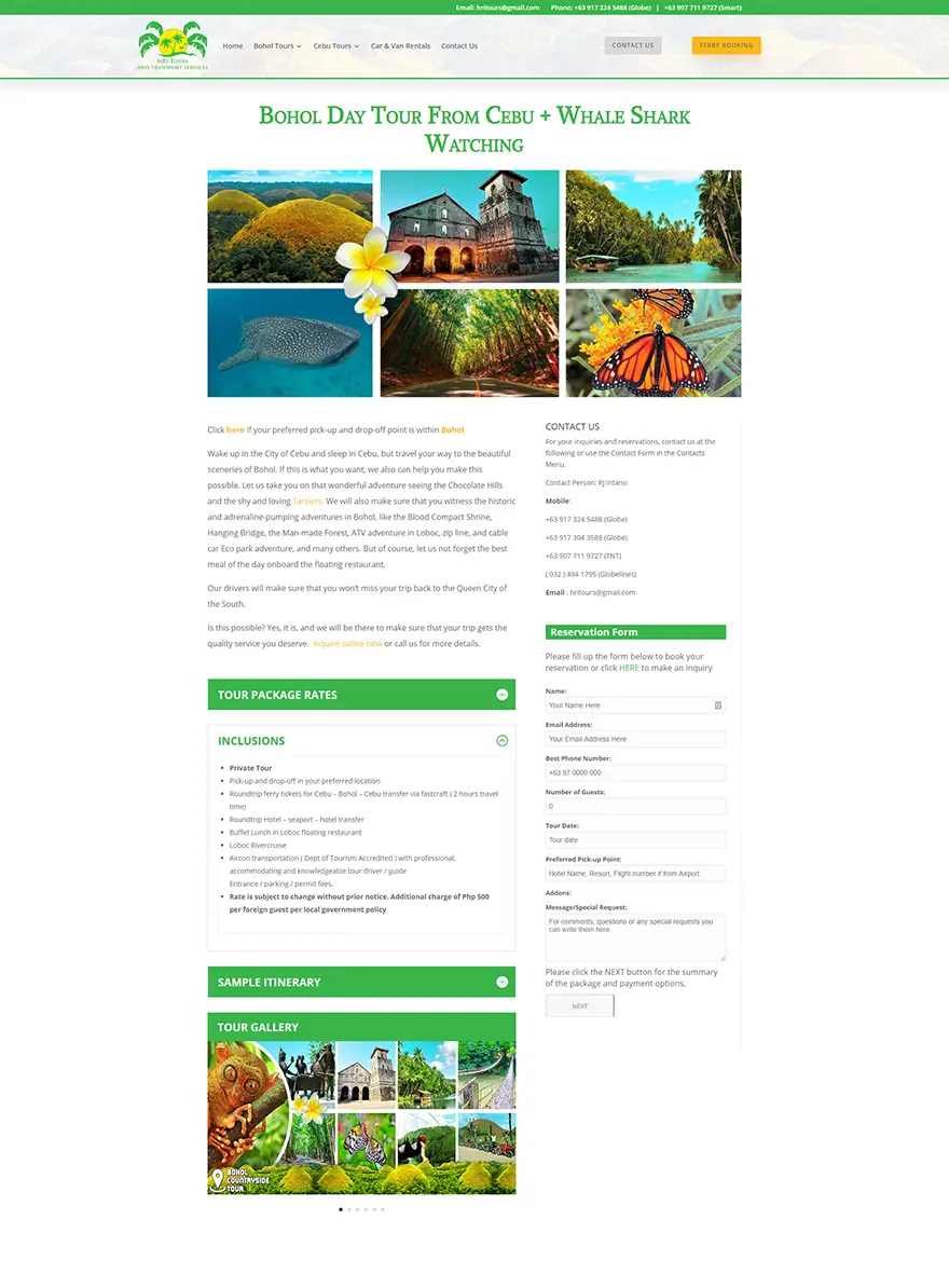 The website www.boholcebutours.com is evidently seen as the inspiration to some very competitive up and coming rivals. You can clearly see very obvious similarities of the layout and structure in some of these rising Tour providers. Here are some of those sites sharing very similar structure to my design and layout: