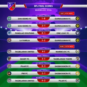Note: The Bohol Football League (BFL) was launched in August 2024, and I began collaborating with them in mid-October 2024. As of November 2024, I’m proud to contribute to their remarkable growth. Their Facebook page, which features live-streamed events, has already surpassed 10,000 followers in just a few months—a testament to the league’s growing popularity and community impact.