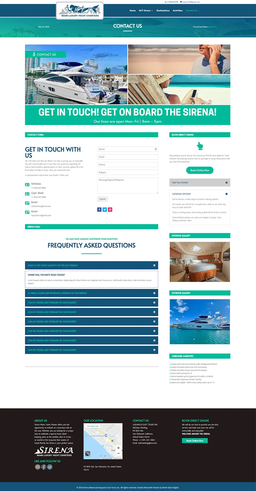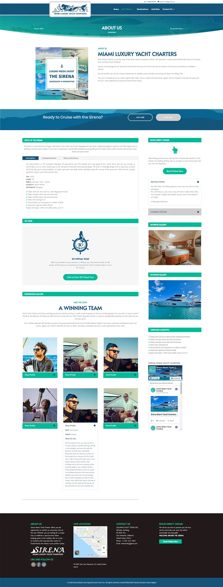 To build the site, a good amount of research (a day) was needed for me in order to get a good grasp of the industry and answer questions like, what’s the ideal audience? The age group and demographics? The different types of yacht (cats, single hulls, motorized, etc.) and even researching the kind of colors that these potential customers appeal to. I understand my client is a very busy man, so I have to take the initiative to gather as much resources as needed so that I can come up with a concept and build the site.