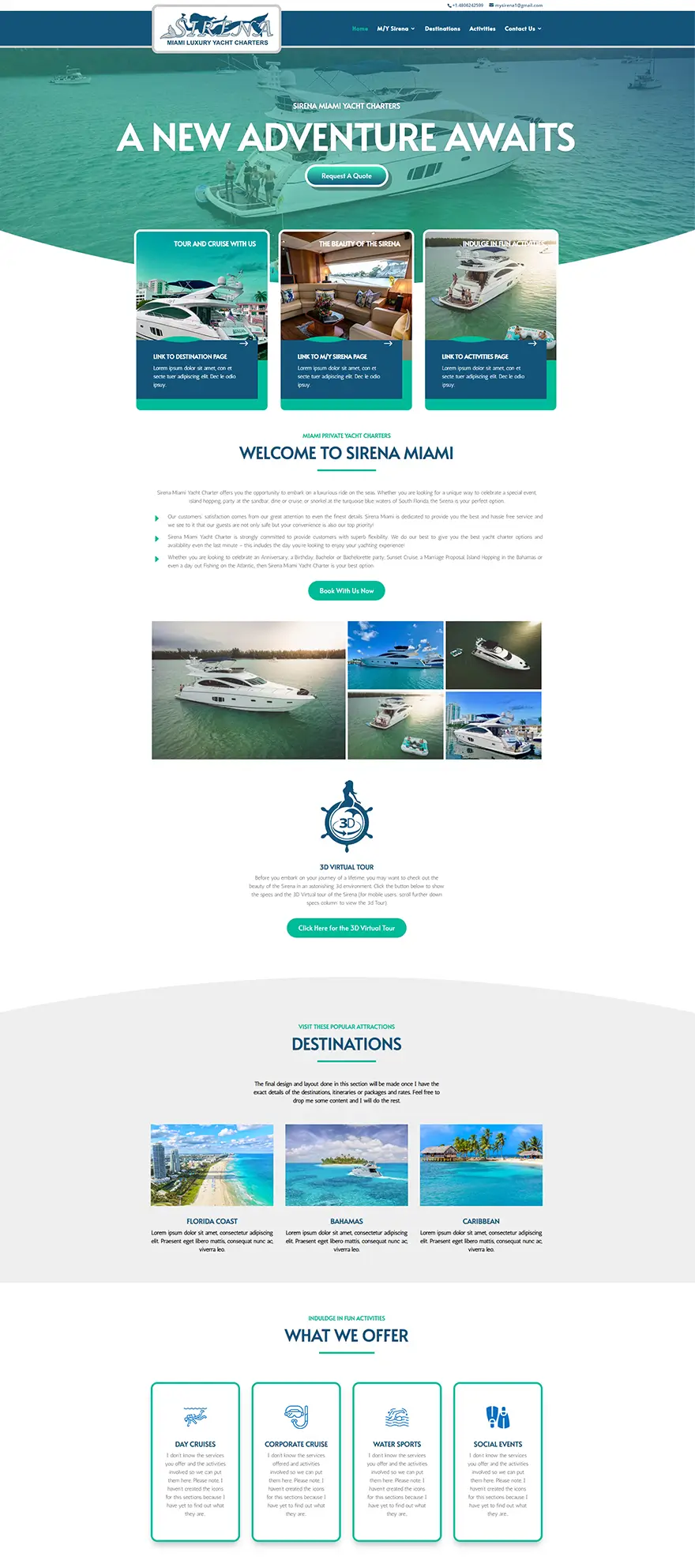 To build a good looking Luxury Yacht Charter site while maintaining simplicity and easy navigation throughout the pages showcasing the beauty of the Sirena Yacht. The Yacht Industry was a big challenge for me since I have no clue or even a basic knowledge of what a Yacht Charter is from the start. There are hundreds of Yacht Charter websites out there, and mostly caters to not only 1 Yacht but mostly an entire fleet of them and it’s a big challenge for me since I can’t find a site to model or base my inspiration from.